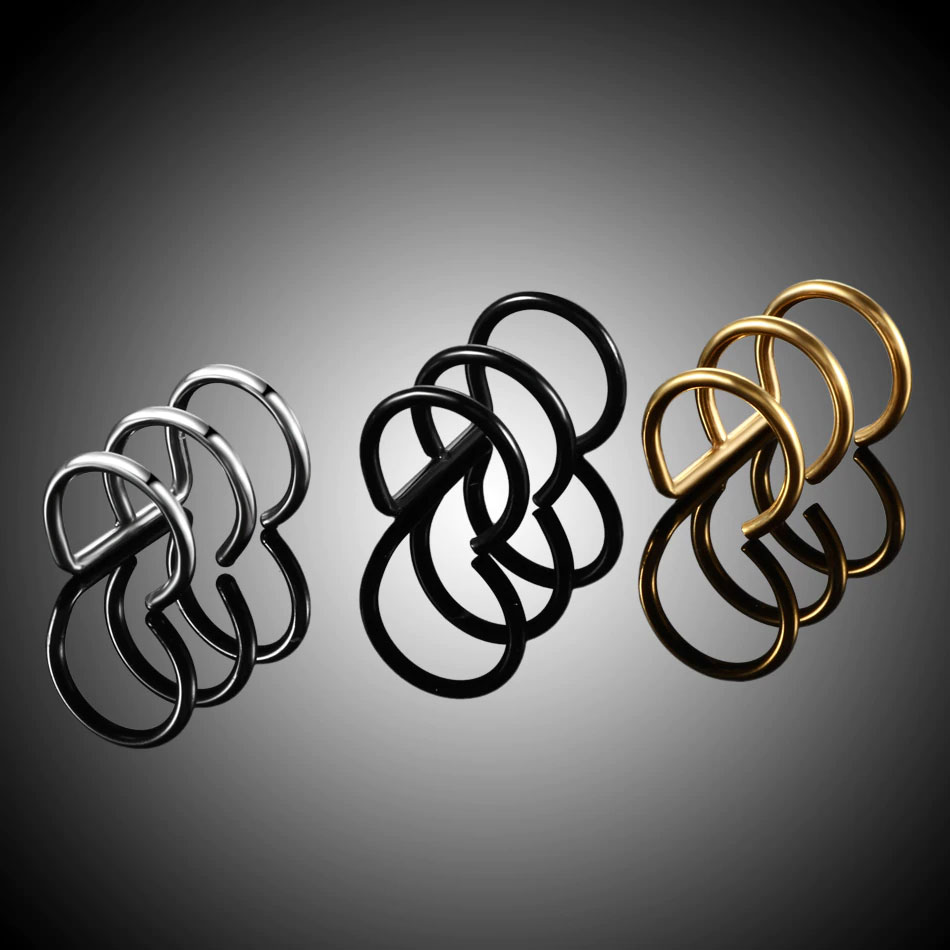 Puriste Cuff Helix Hopea & Musta & Kulta Puristekoru korvanlehteen. Materiaali: Ruostumaton teräs Pituus: 14 mm Halkaisija: 11 mm
