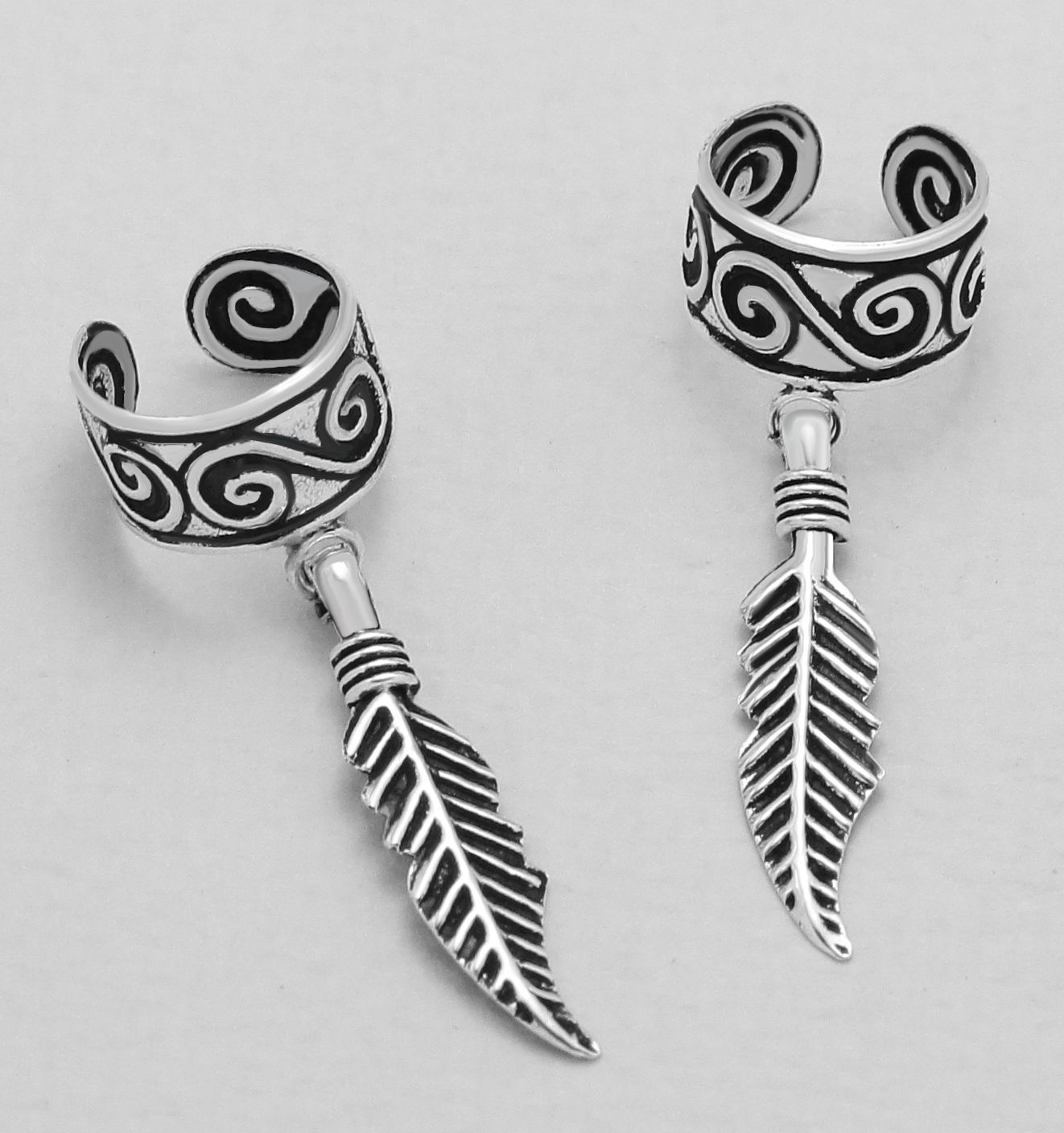 Puriste Sulka IN26965 Tyylikkäällä kuviolla koristeltu puristemallinen korvakoru on oiva valinta sinulle, joka et halua rei'ittää korviasi enempää tai haluat vain joskus pitää enemmän korvakoruja. Näissä puristemallisissa korvakoruissa päätähtenä ovat roikkuvat sulat, kuten myös niin kutsuttu kreolikuvio. Kuviointia tuo paremmin esiin oksidointi. - Materiaali: Sterling-hopea 925/1000 - Koko: 20 x 12mm - Oksidoitu pinta
