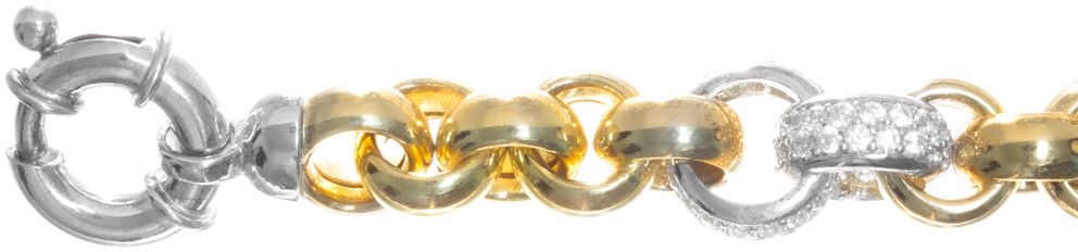 Ranneketju papu kaksivärinen zirkonein 20,5CM Tuotteen ominaisuudet: Tuotenumero: FS1847-039-20GP Materiaali: Hopea (925/1000), kullattu Pituus: 20,5cm