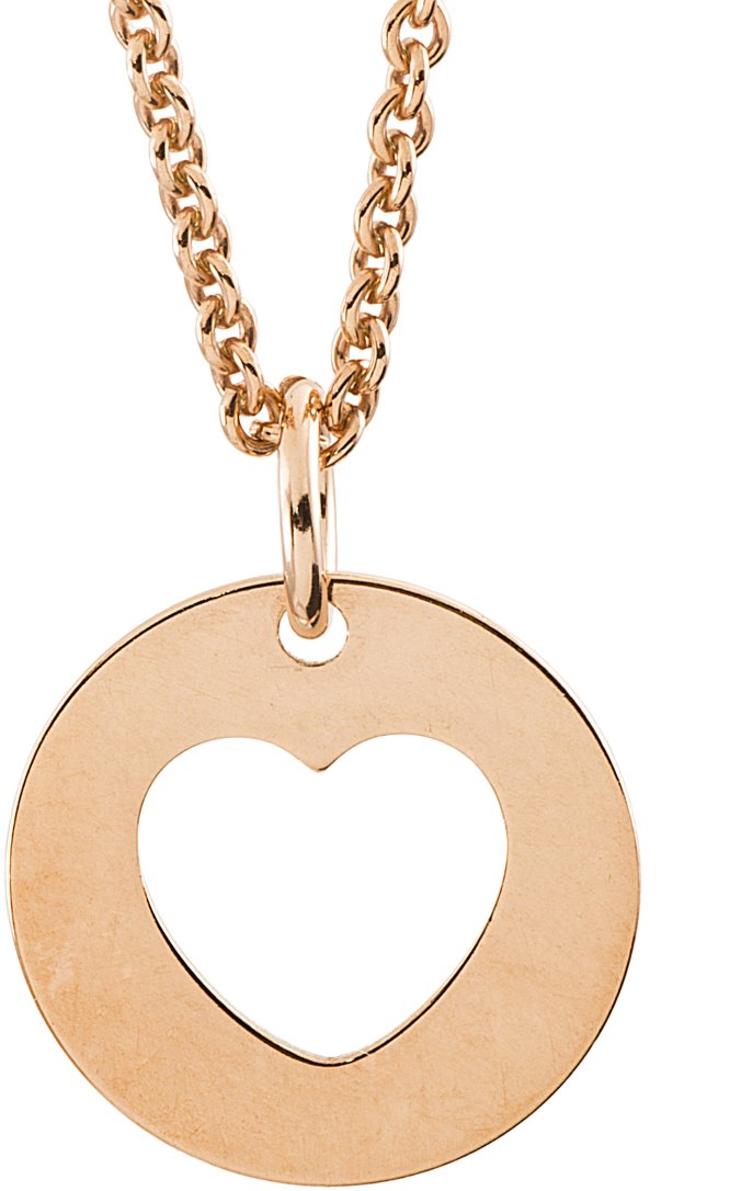 Hempeän ruusukullanvärinen laattariipus, jonka keskellä avoin sydänkuvio. Kaulakorun pituus on säädettävissä väliltä 42-47cm.