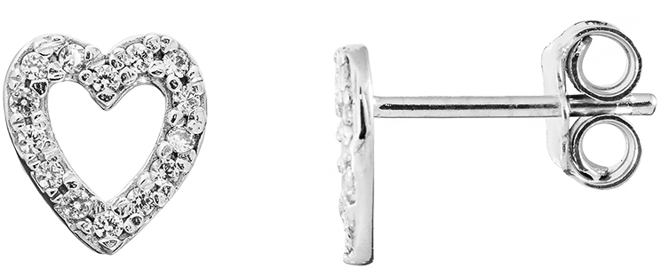 Valkokultaiset avosydänkorvakorut zirkoneilla.
