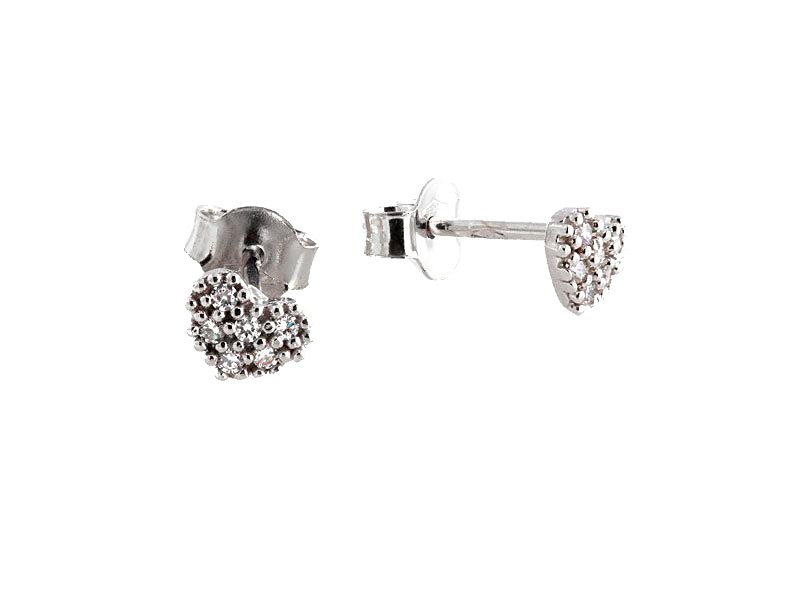 Sydämen muotoiset, valkokullasta valmistetut tappikorvakorut joissa säihkyy kirkkaat zirkonit