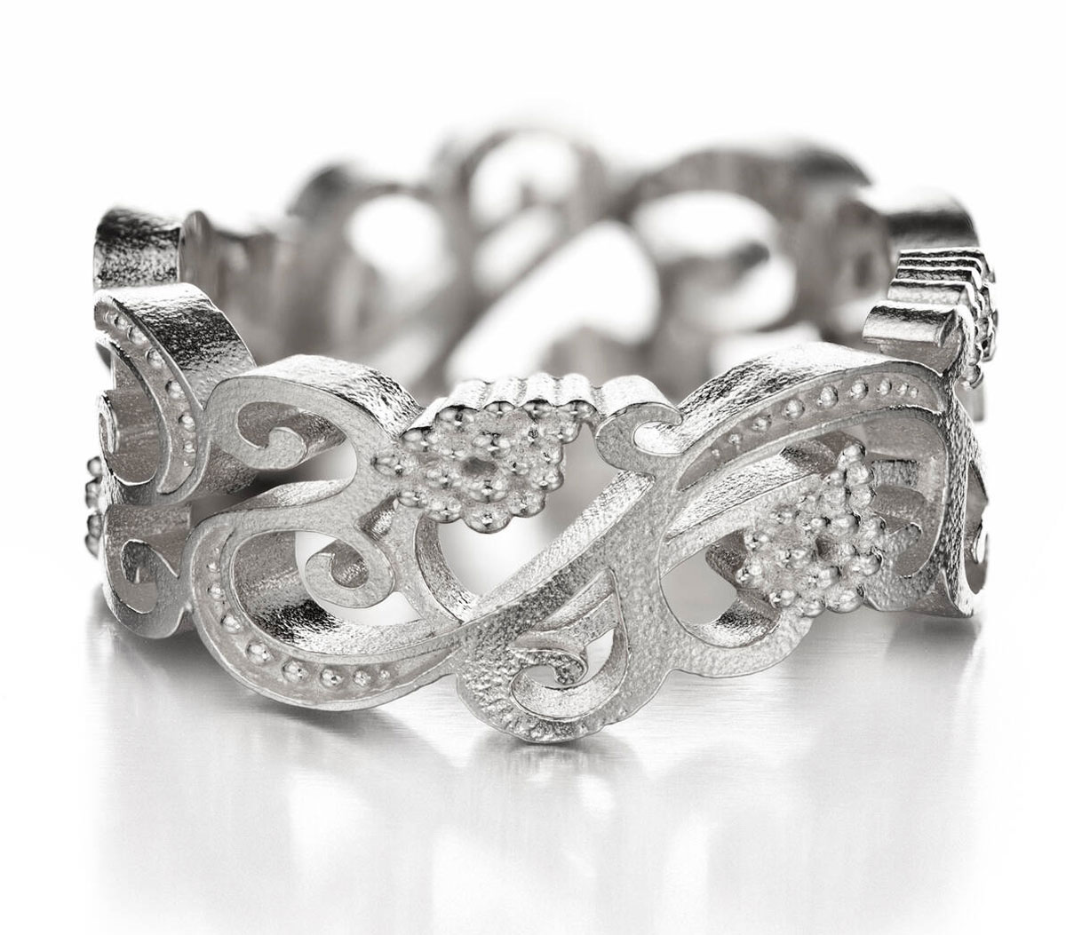 Ihastuttava Lumoava Eden hopeasormuksen filigraani tyylinen muotoilu lumoaa kauneudellaan.