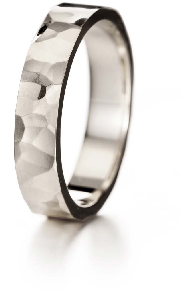 Sormuksen pintaan luotu epätasainen tektuuri antaa valolle upean loisteen.