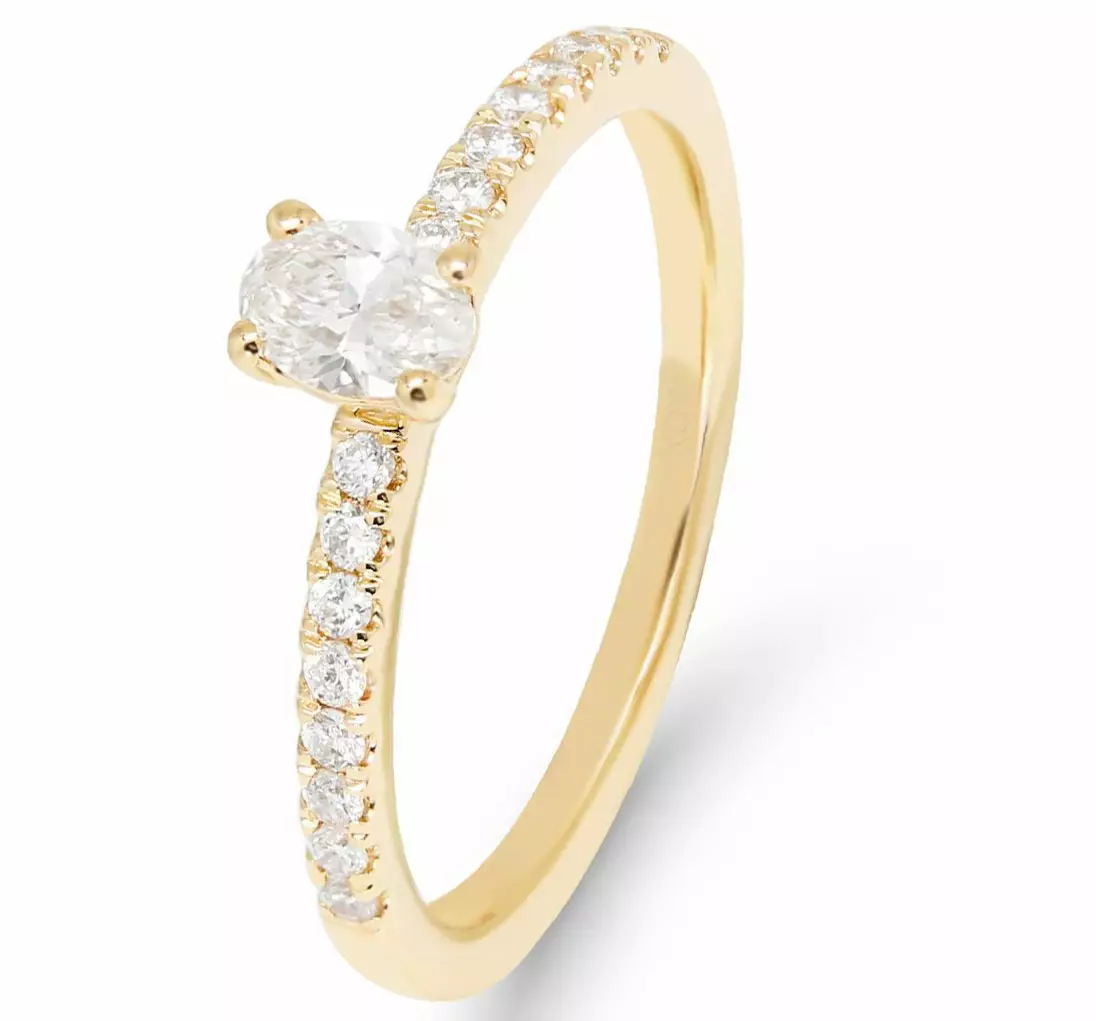 Sormuksen keltakullan lämmin sävy antaa korulle klassisen ja pehmeän hehkun. 1,6 mm leveä runko tekee sormuksesta kevyen ja miellyttävän käyttää, mutta riittävän tukevan päivittäiseen käyttöön. Keskikiven 4,6 x 3,4 mm ovaali muoto korostaa sormuksen naisellisuutta ja tuo siihen hienostunutta eleganssia – juuri sopivasti näyttävyyttä ilman liiallista prameutta.