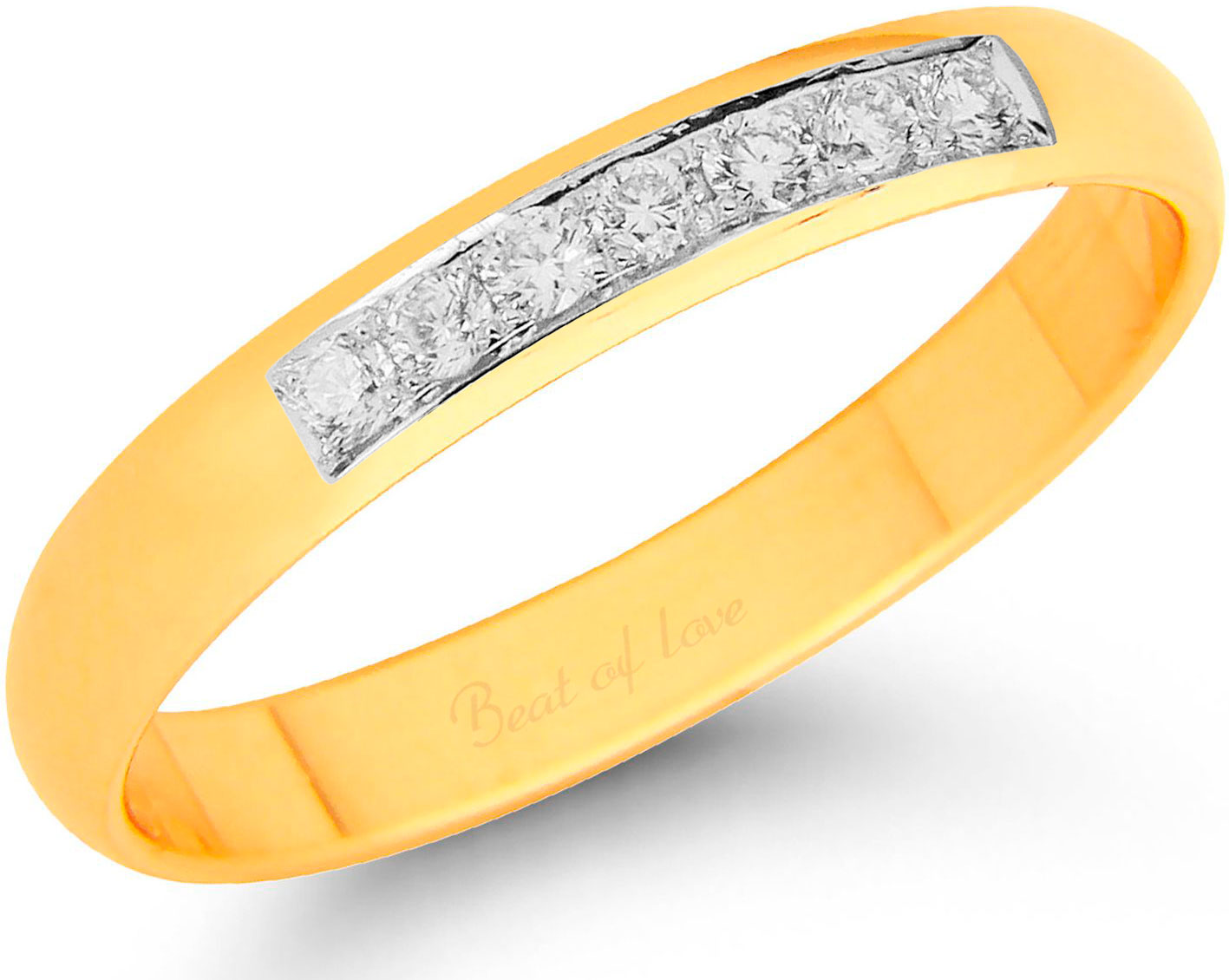 Seitsemällä säihkyvällä timantilla koristetun Beat of love timanttisormuksen runko on valmistettu 14 karaatin keltakullasta ja sen rungon leveys on 3mm.