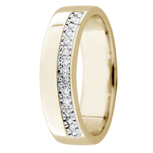 Ariel-timanttisormus on kantikasrunkoinen ja leveä, huimat 5mm. Timantit on istutettu alareunaan, kauniiseen riviin.