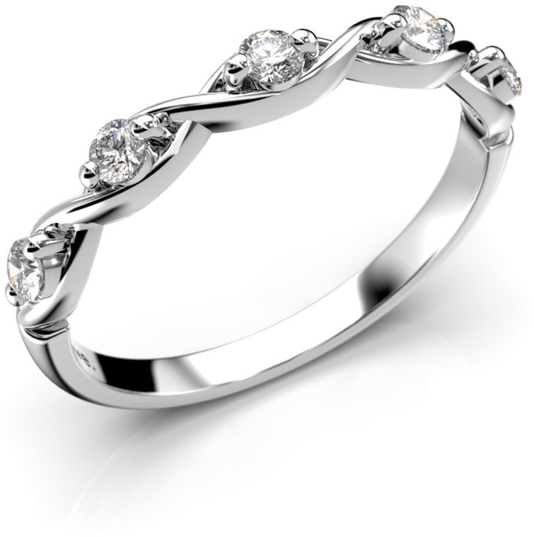 Festive Aida sormuksen siro runko muodostaa kauniin palmikkokuvion johon on istutettu viisi kappaletta säihkyviä 0,04 karaatin timanttia.