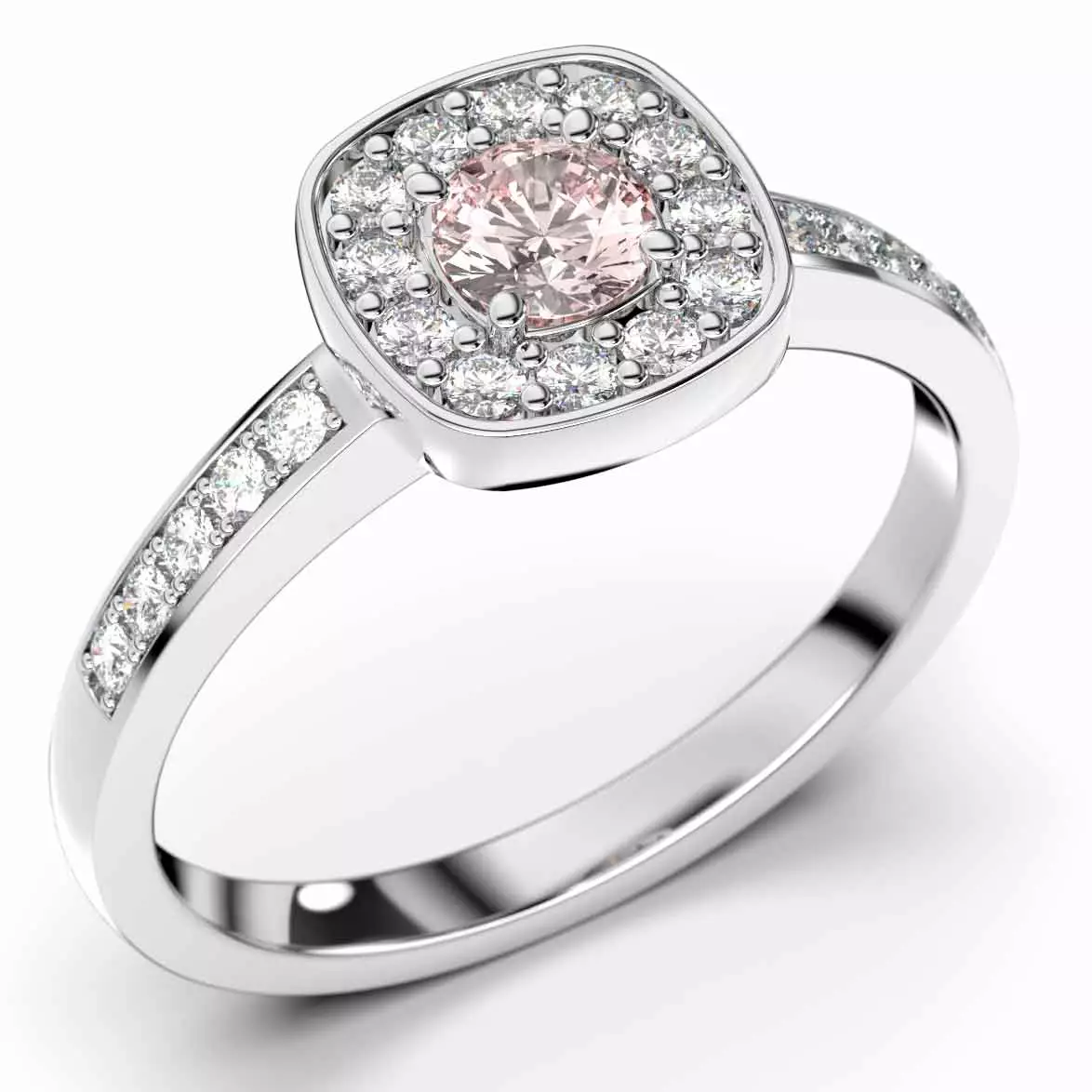 Festive Alicia timanttisormus morganiitilla 14-503-043M-VK Festive Alicia sormuksen näyttävässä halokehyksessä säihkyy hennon vaaleanpunainen morganiitti, jota reunustaa briljanttihiotut... Lue lisää