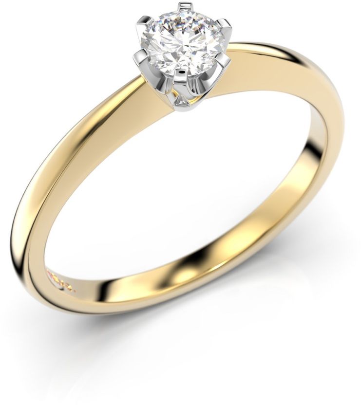 Hurmaava timanttisormus, jonka keskipisteenä on kaunis kruunuistutettu timantti. Sormuksen runko on valmistettu 14 karaatin keltakullasta ja kruunuistutus kauniinsävyisestä valkokullasta. Runko kapenee timanttia kohden ja antaa siten kaiken huomion tälle säkenöivälle upeudelle.