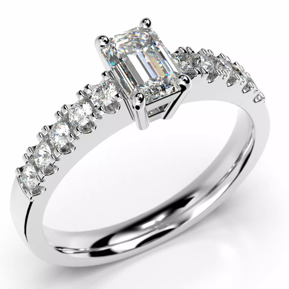 Erittäin kaunis Festive timanttisormus, jota koristavat kauniit timantit. Sormus on valmistettu 14 karaatin valkokullasta ja sen timanttien kokonaispaino on 0,60ct W/SI. Sormuksessa on käytetty kaunista baquette- hiottua timanttia. Tämän molemmin puolin on istutettu kauniita briljantti- hiottuja timantteja. Kaikki Festive- tuotteet on suunniteltu ja valmistettu Suomessa.