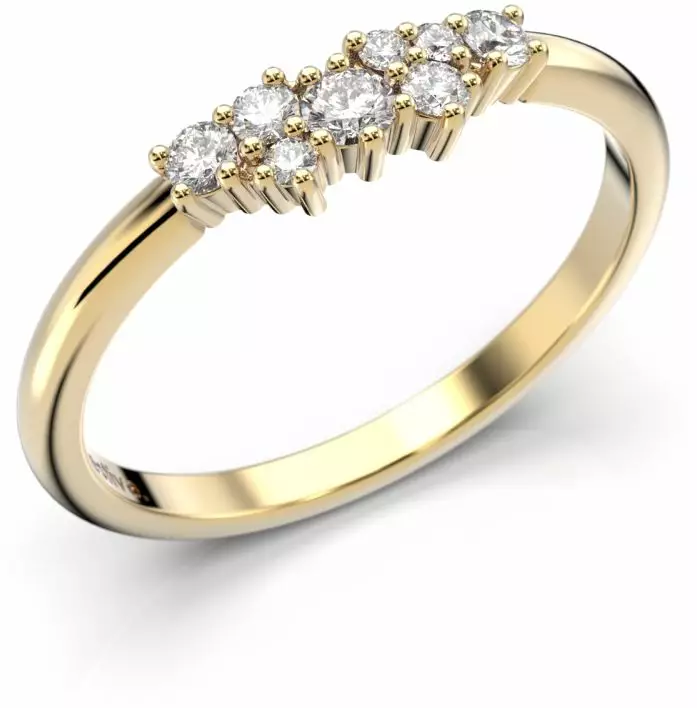 Sormusta koristaa kahdeksan laboratoriossa valmistettua TW/VS1 laadun timanttia, jotka on istutettu kiehtovaan runkoon.