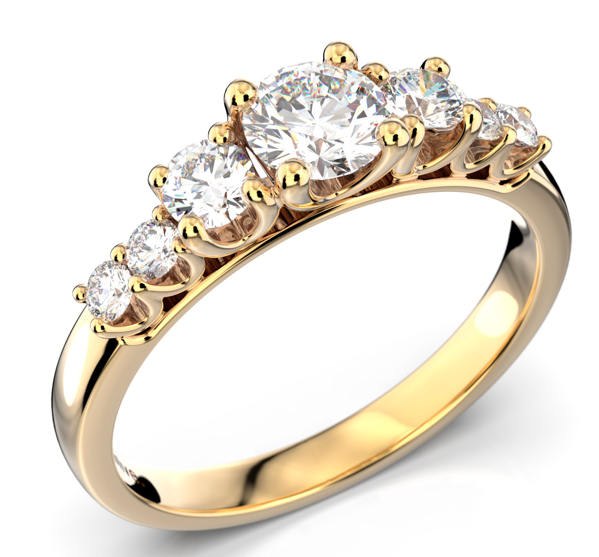 Sormus on valmistettu 14 karaatin keltakullasta ja sen timanttien kokonaispaino on 0,74ct H/SI1.