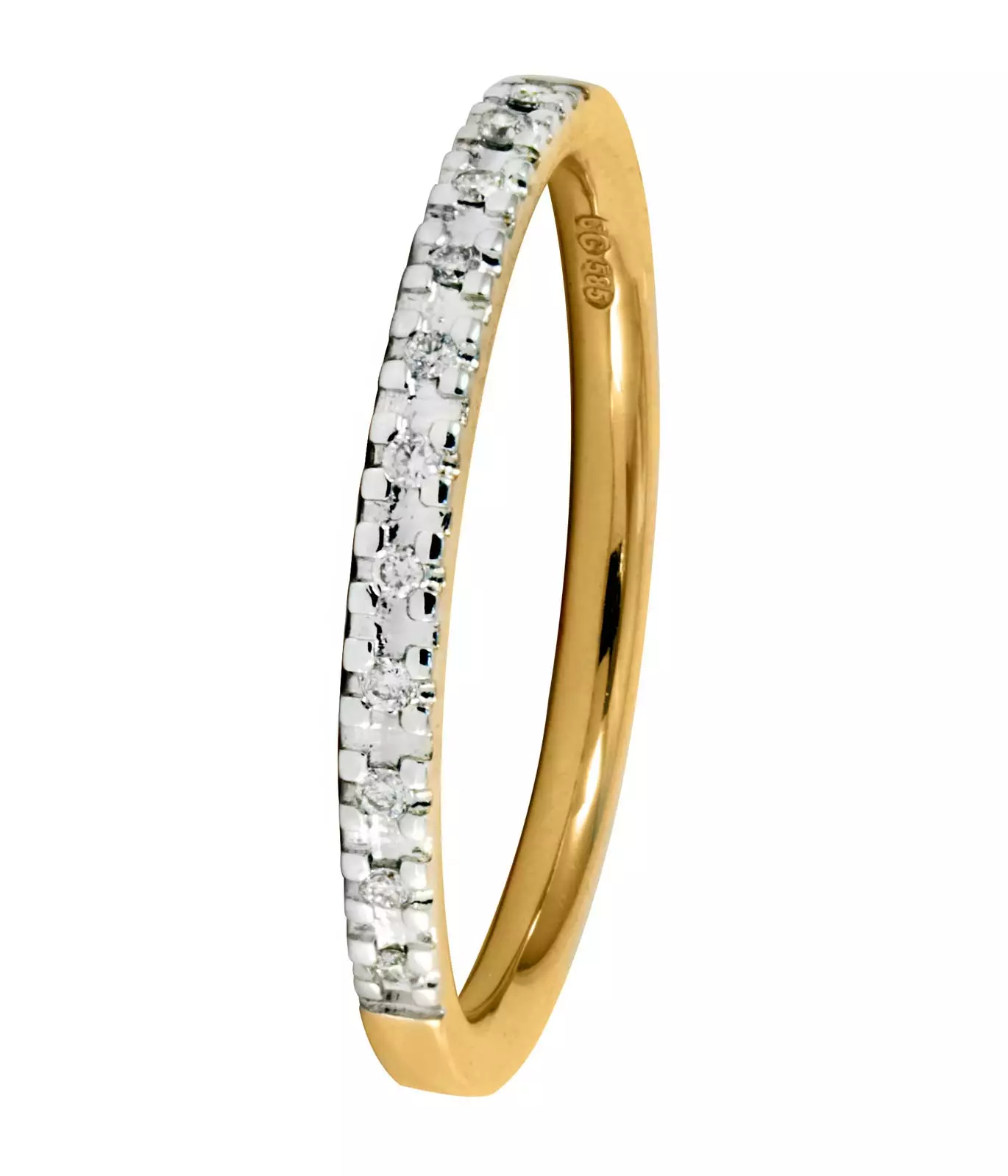 Kaunis GoldStar rivitimanttisormus, jossa säihkyy 11 kappaletta 0,005 karaatin painoisia timantteja.