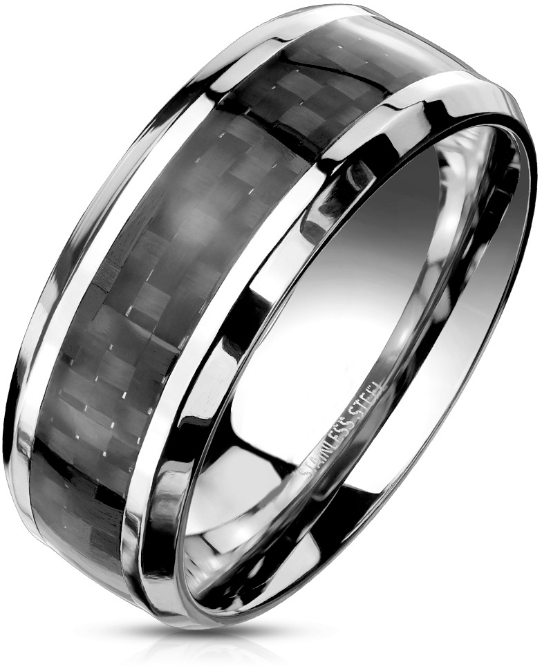H01-8 Rally musta hiilikuitu-teräs kihlasormus