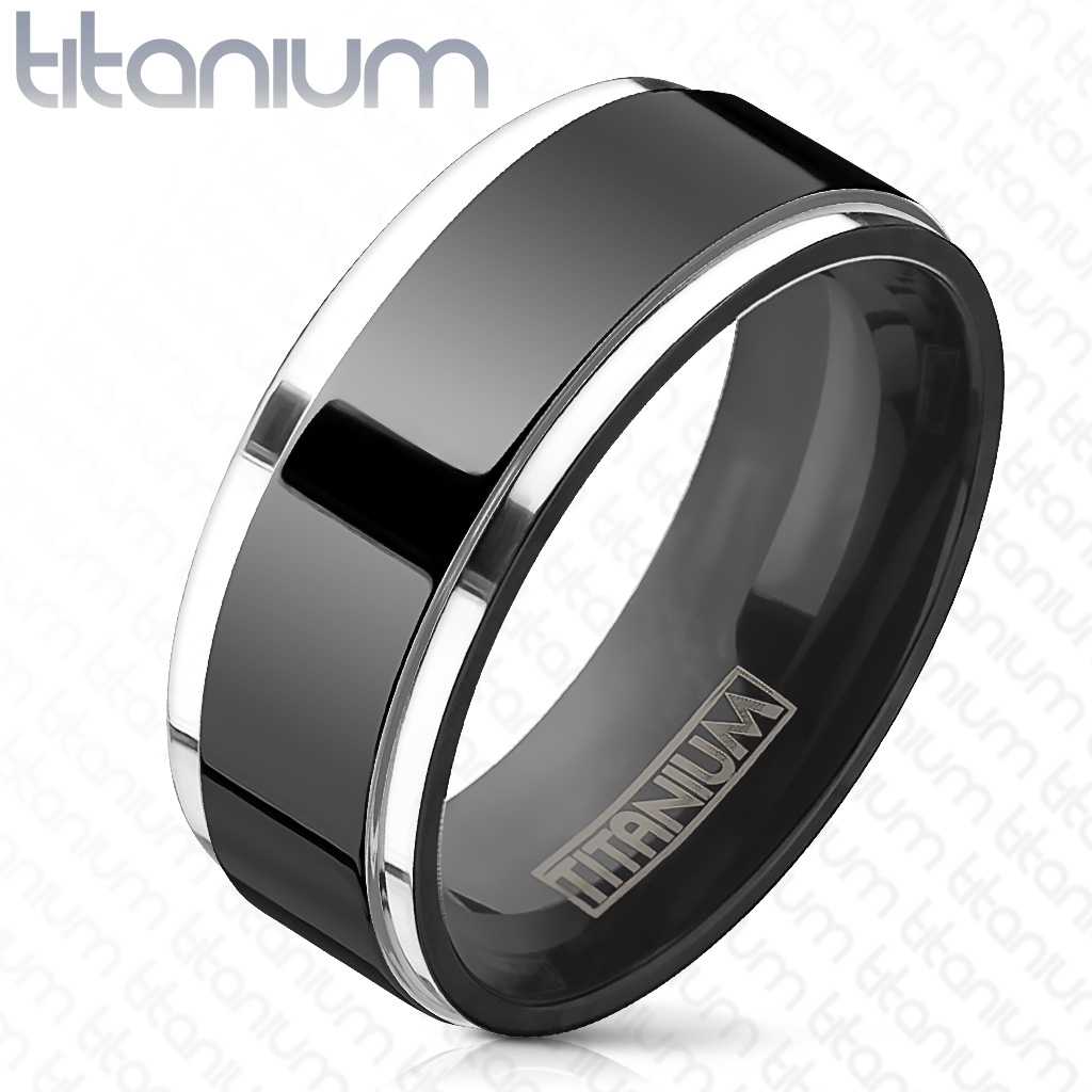 Kiiltävä kasivärinen titaani sormus Näyttävä titaani sormus, jonka keskiosassa on musta kiiltävä raita. Sormuksen leveys on 8mm ja kaiverrus sisältyy sormuksen hintaan. Tuotteen ominaisuudet:... Lue lisää
