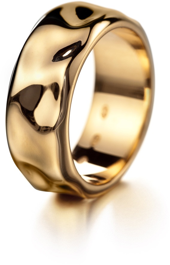 14 karaatin kalkokullasta valmistettu Hunaja sormus, jossa upea aaltoileva tekstuuri.