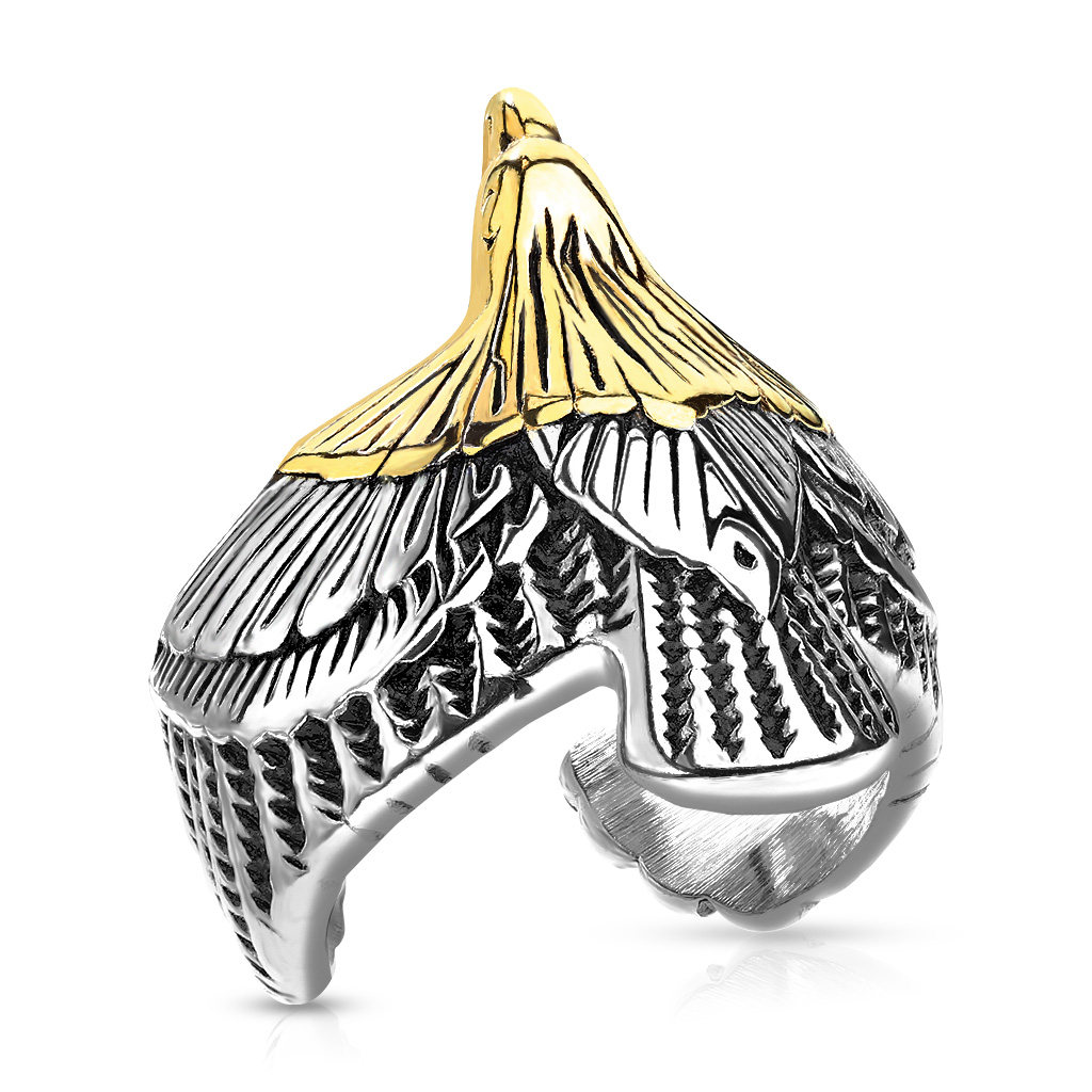 Kotka Sormus H7607 Upea kotka sormus kultaisella päällä. Materiaali teräs ja kullattu teräs