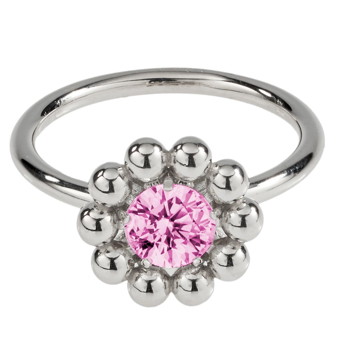 Daisy sormuksen materiaalina on käytetty hopeaa ja kivinä niissä säihkyy eri väriset zirkonit.