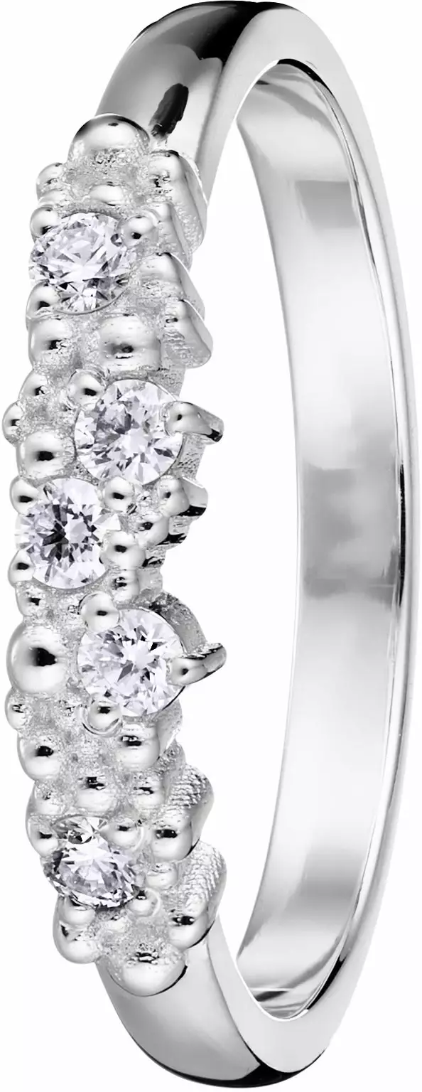 Lumoavan Tiara-sarjan kaunis timanttisormus. Valmistettu 14 karaatin valkokullasta. Viisi koristeellisesti istutettua luonnontimanttia kruunaavat kokonaisuuden. Sormuksen suunnittelijana on toiminut Heikki Hartikainen.