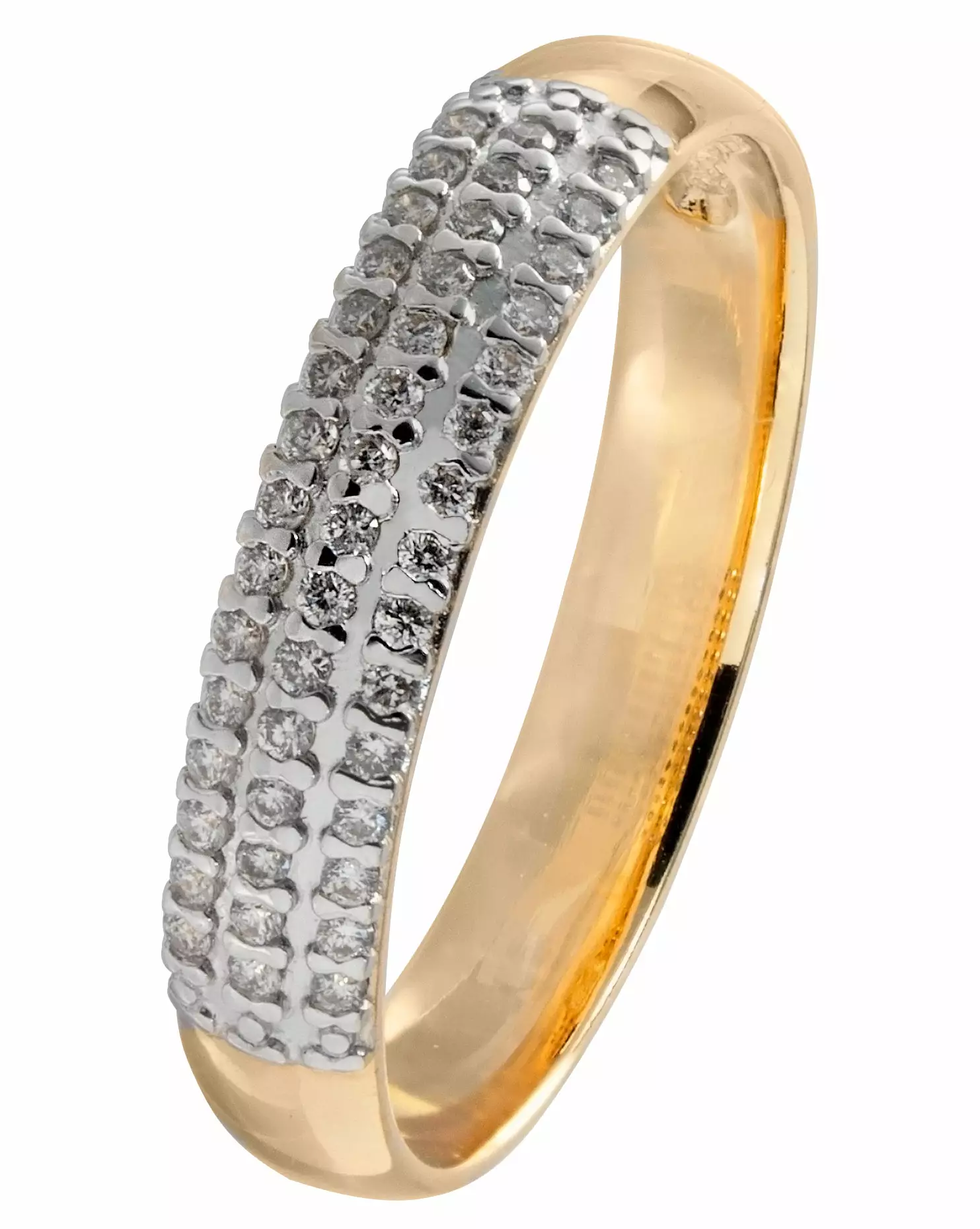 Sormuksen leveys on 3,6 mm, mikä tekee siitä tasapainoisen – riittävän näyttävän mutta edelleen sirolinjaisen. Kolmen timanttirivin yhtenäinen pinta luo sormukseen ylellistä kimallusta ja tekee siitä katseenvangitsijan juhlaan ja arkeen.