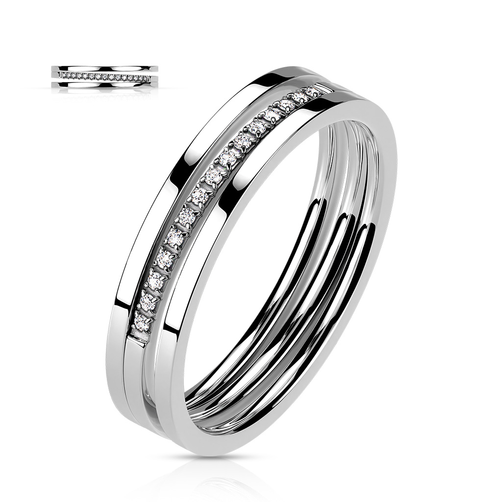 Tripla terässormus zirkoneilla H7723S Terässormus jossa yksi rivi zirkoneita Leveys 5mm Materiaali: teräs Zirkon rivi