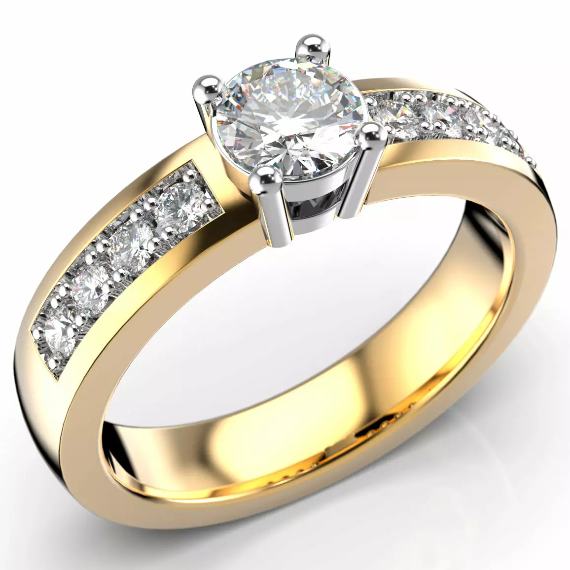 Erittäin kaunis Festive timanttisormus, jota koristavat kauniit timantit. Sormus on valmistettu 14 karaatin keltakullasta ja sen timanttien kokonaispaino on 0,56ct W/SI. Sormuksen keskelle on istutettu säkenöivä 0,40ct timantti, jonka molemin puolin on vielä istutettu neljä 0,02ct W/SI timanttia.