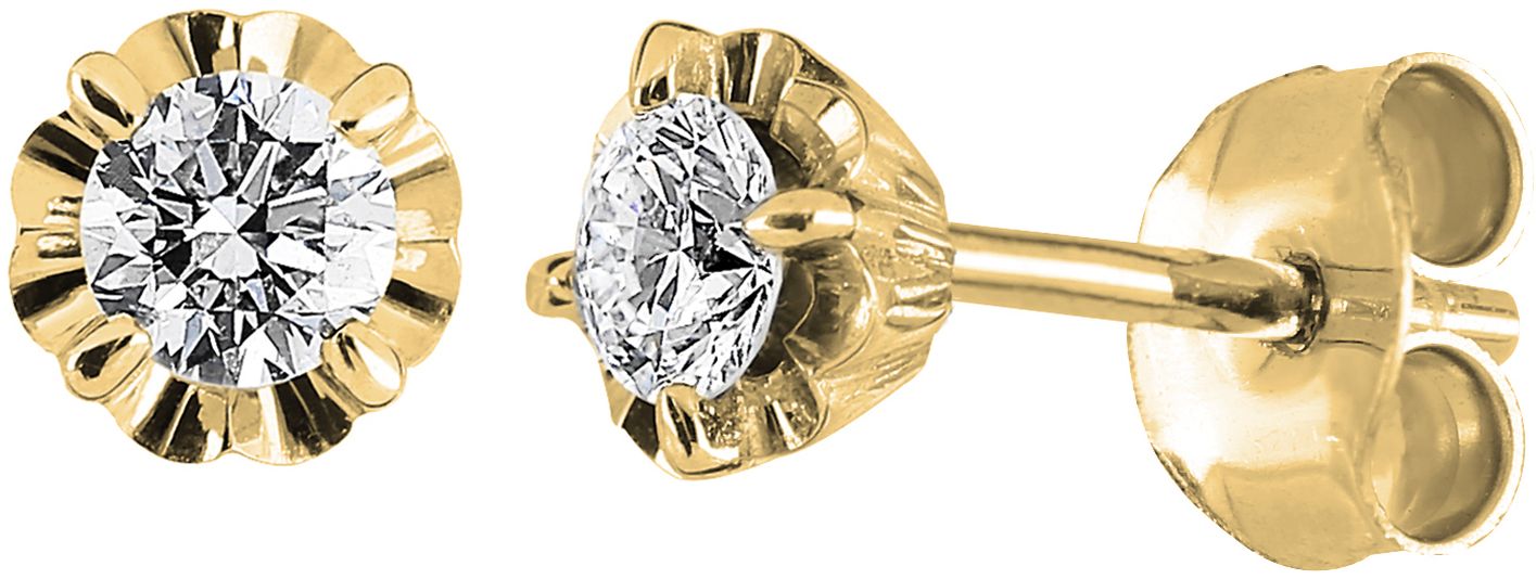 Kauniit kultaiset timanttikorvakorut, joissa molemmissa säihkyy 0,13ct timantti. Timantin kukkamaisen istutuksen kiillotetut kaarevat viisteet korostavat timantin loistoa. Upeat timanttikorvakorut käytettäviksi niin juhlissa kuin arkenakin.