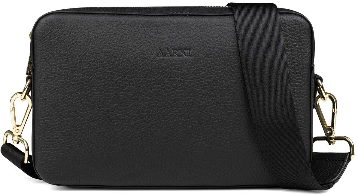 Tähän olkalaukkuun mahtuu kätevästi kaikki tärkeimmät tavarat, laukun sisältä löytyy avoimen taskun lisäksi vetoketjulla suljettava sisätasku ja neljä korttitaskua. Laukku on suunniteltu siten, että sinne sujahtaa kätevästi esimerkiksi puhelin, Aarnin Clutch-lompakko sekä aurinkolasit kotelossaan, näiden lisäksi tilaa jää vielä pienille esineille, kuten kuulokkeille ja meikeille.