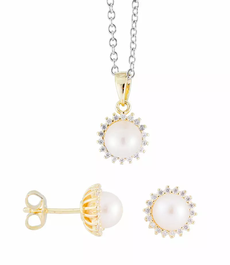 Setti sisältää kauniit helmikorvakorut ja riipuksen.