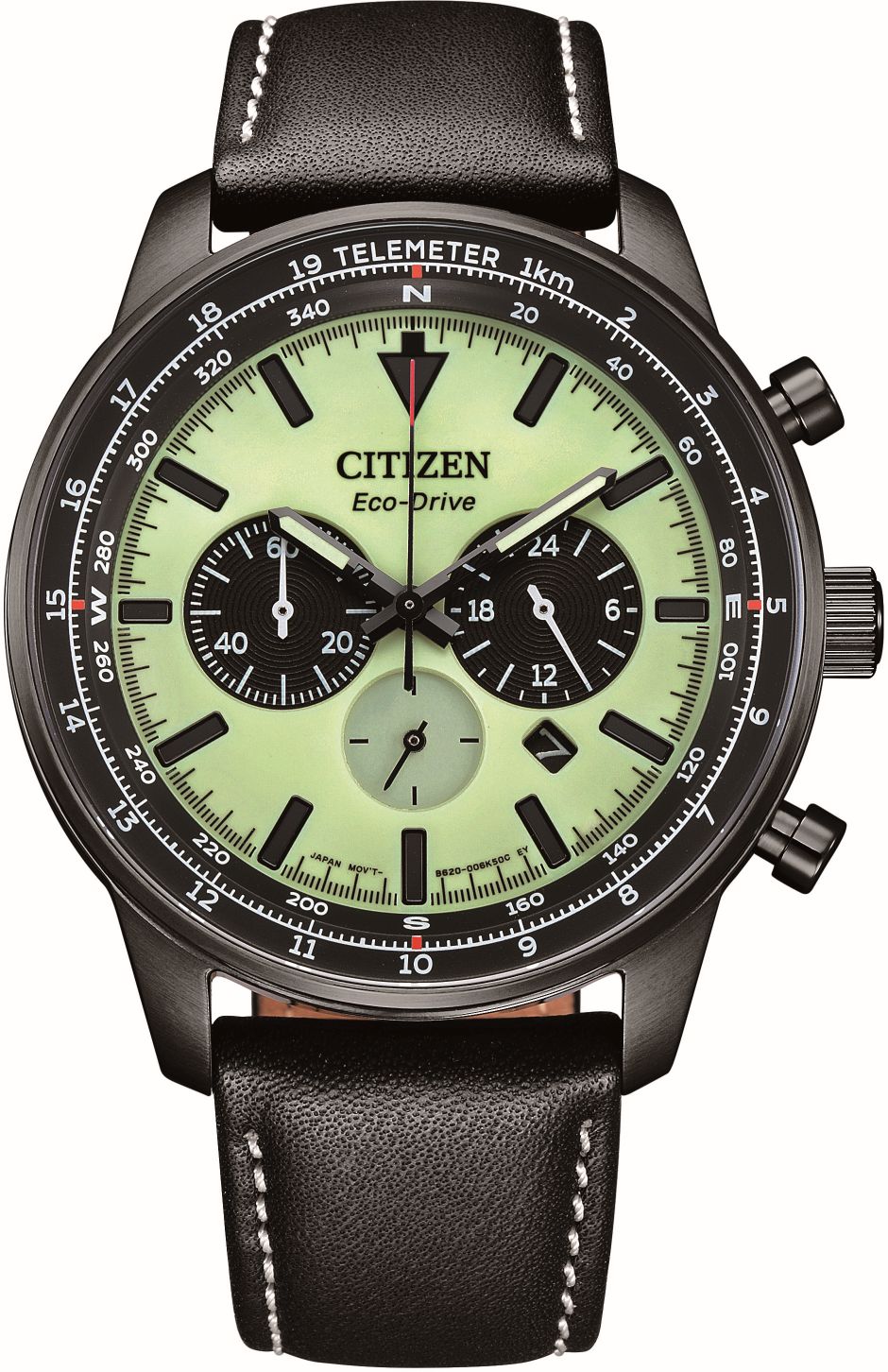 Tässä ilmailusta inspiroituneessa Citizenissä on kestävä musta teräsrunko ja ajattoman tyylikäs musta nahkaranneke. Kellossa on lumioidut eli pimeässä hohtavat viisarit sekä kellotaulu on fluoresoiva eli se hohtaa UV-valossa.