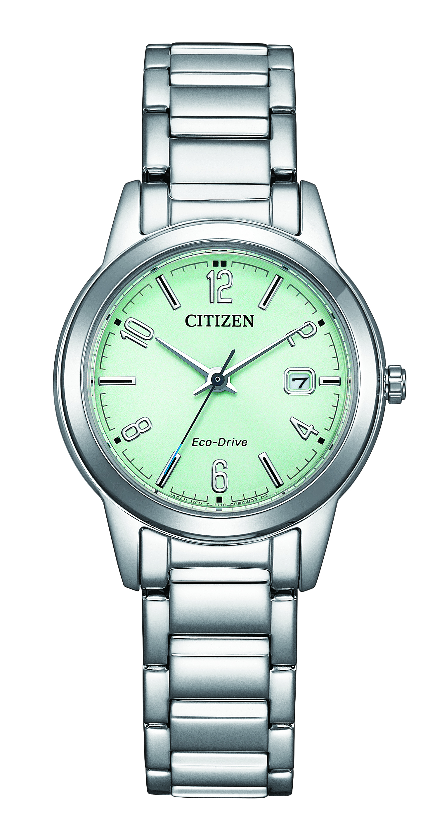 Citizenin Eco-Drive malliston naisten rannekello. Eco-Drive mallit muuntavat valon energian kellon virtalähteeksi ja varastoivat ylijäämän kennoon. Täydellä latauksella Eco-Drive kello toimii kuukausia jopa pimeässä. Se on suunniteltu lataamaan tavallisista jokapäiväisistä valonlähteistä, auringonvalon ollessa paras vaihtoehto. Noin 5-6 tuntia kuukaudessa auringonvalosta ladattuna riittää täyteen varaukseen. Ruostumattomasta teräksestä valmistettu runko ja ranneke. Vaaleanvihreän sävyinen kellotaulu, valkoisen ja mustan värin yhdistelmä komeilee indekseissä ja osoittimissa. Päivyri sijaitsee kello kolmessa. Kellolle kirjoitetaan kahden vuoden takuu ja se toimitetaan tuotemerkin omassa rasiassa.