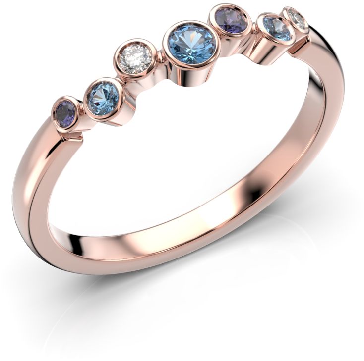 Festive Drop Blue sormus, jonka timanttien rinnalla säihkyvät sinisafiirit ja topaasit.