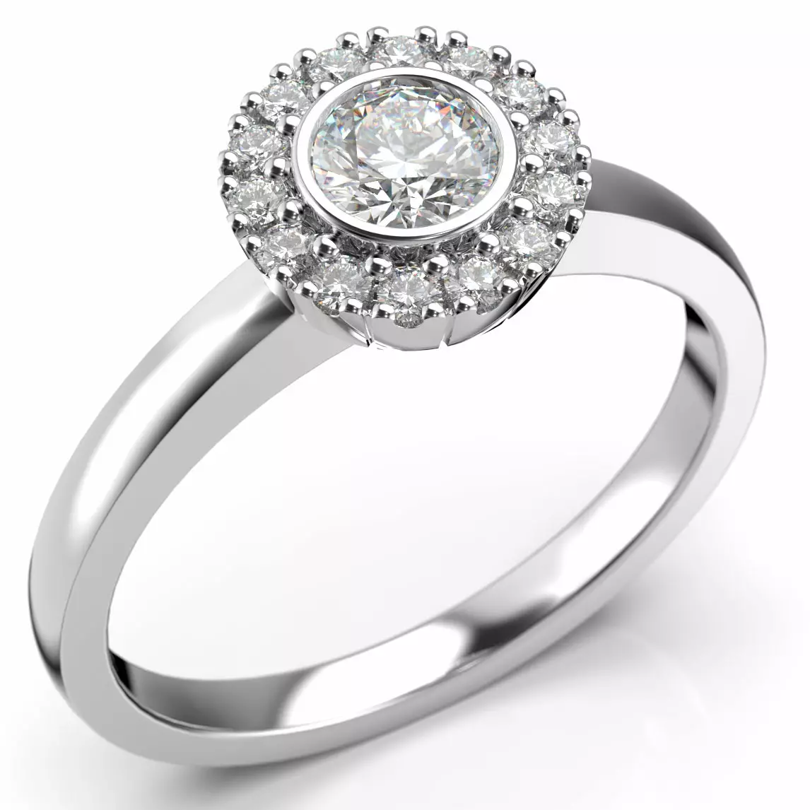 Erittäin kaunis Festive timanttisormus, jota koristavat kauniit timantit. Sormus on valmistettu 14 karaatin valkokullasta ja sen timanttien kokonaispaino on 0,39ct W/SI. Sormuksen keskelle on istutettu ympyrän muotoon kauniita timantteja, joista keskimmäinen on kooltaan 0,25ct ja sen ympärille on istutettu 14x 0,01ct¨.
