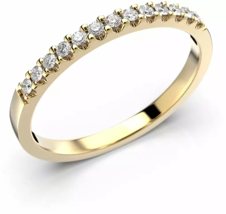 Sormuksen siro runko on valmistettu 14 karaatin keltakullasta ja sen 1,9mm leveä runko on hienoisesti pyöristetty, muodon pysyessä kuitenkin flakkamaisena.