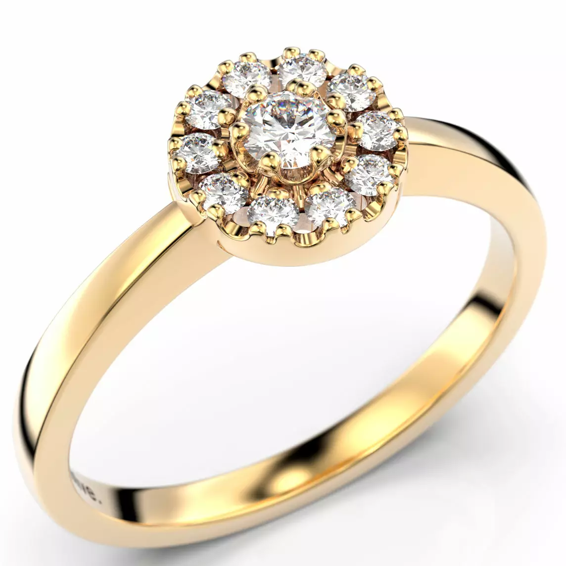 keltakullasta. Tämän Festiven Vintage-malliston timanttisormuksen halotyyppinen timantti-