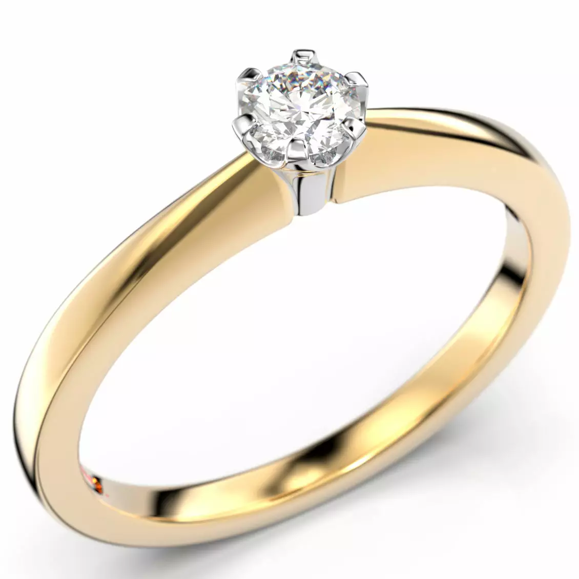 keltakullasta. Sormuksen katseenvangitsijana toimii kuusikyntiseen kruunuun istutettu 0,15
