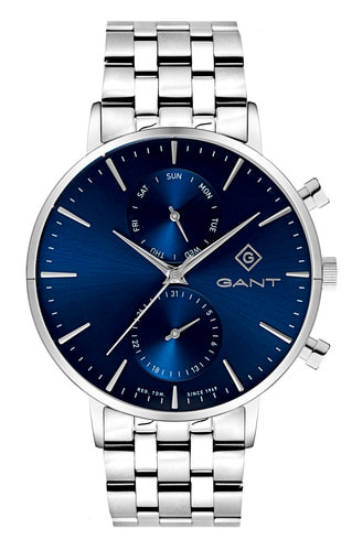 Gant G121003 kellossa on tyylikkään sininen kellotaulu, joka on viimeistelty sunburst -tekstuurilla, jonka ansiosta kellotaulun sävy elää hieman tummemman sininsesta vaaleammaksi valon osuessa siihen.