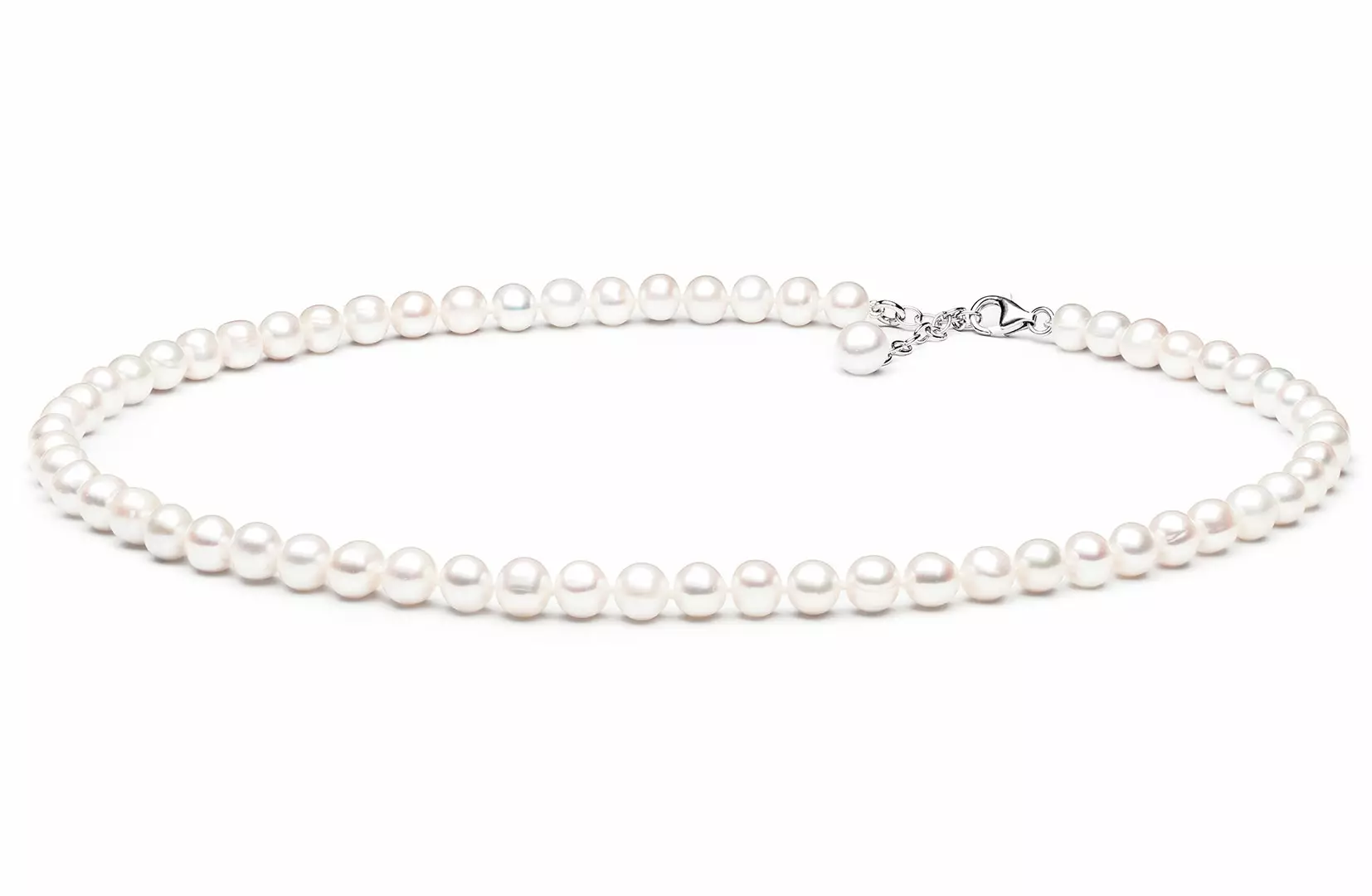 Kaulakorussa on kauniisti hohtavat 6,5–7,5 mm kokoiset makeanvedenhelmet, jotka luovat tasapainoisen ja hienostuneen ilmeen. Rodinoidusta 925-hopeasta valmistetut metalliosat viimeistelevät korun ja takaavat kestävyyden sekä pitkäikäisen kiillon.