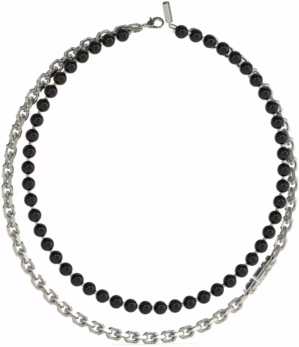 GUESS Edgy Double kaulakoru on moderni ja rohkeasti muotoiltu asuste, joka tuo ranteeseesi sekä tyylikästä särmää että trendikästä eleganssia. Tämä kaulakoru on valmistettu laadukkaasta hopeanvärisestä ruostumattomasta teräksestä, joka säilyttää hohtonsa ja kestää käyttöä pitkään – täydellinen arkeen ja vapaa-ajan tyyleihin.