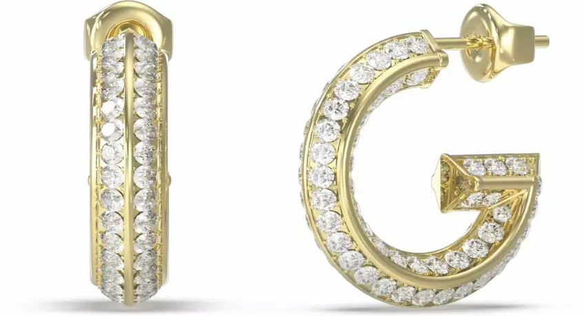 20mm korkeissa, kullan värisissä Guessin G-logoissa säihkyvät lukuisat kirkkaat kristallit.