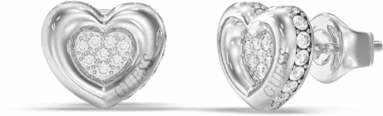 Ihastuttaat Guess korvakorut, joissa sydämien keskustaa koristaa lukuista kirkkaat kristallit.