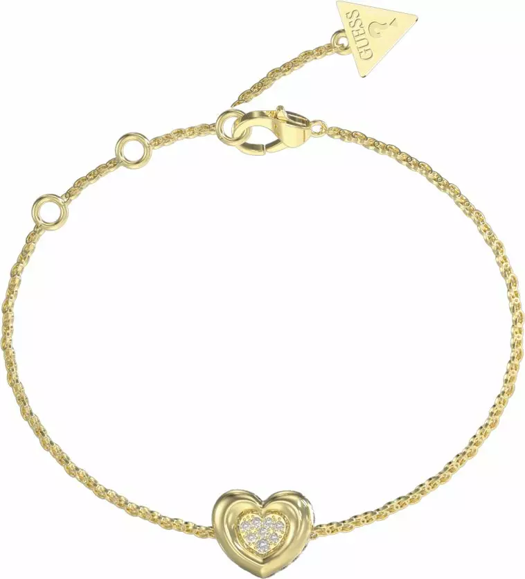 Kullan värinen Guess Love rannekoru jota koristaa kaunis kirkkailla kristalleilla koristettu sydän.