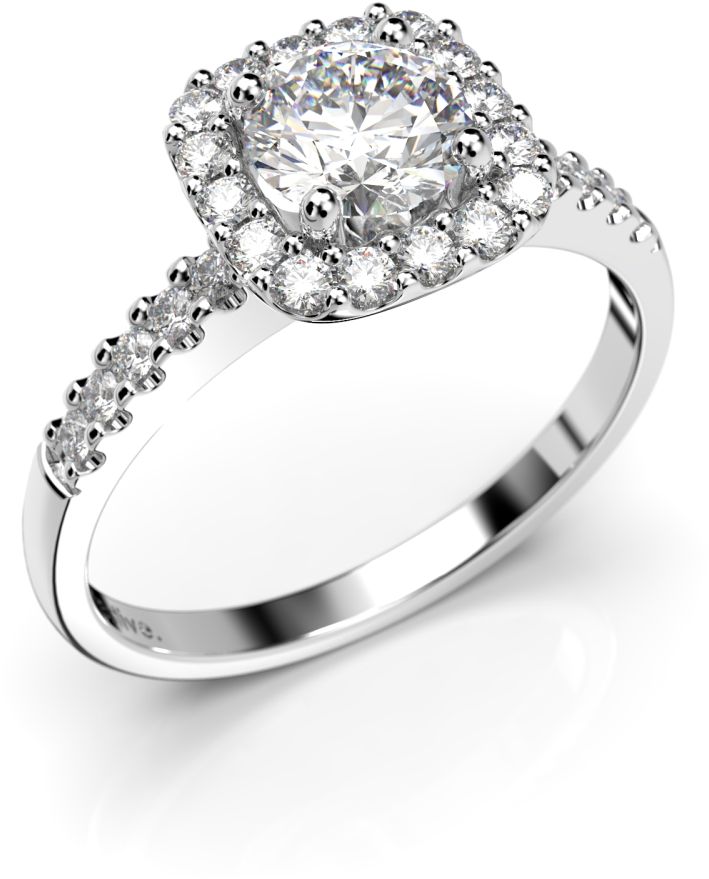 Jemina Halo timanttisormuksen tähtenä säihkyy puolen karaatin painoinen keskuskivi, jota reunustaa 26 kappaletta 0,01 karaatin sivukiveä.