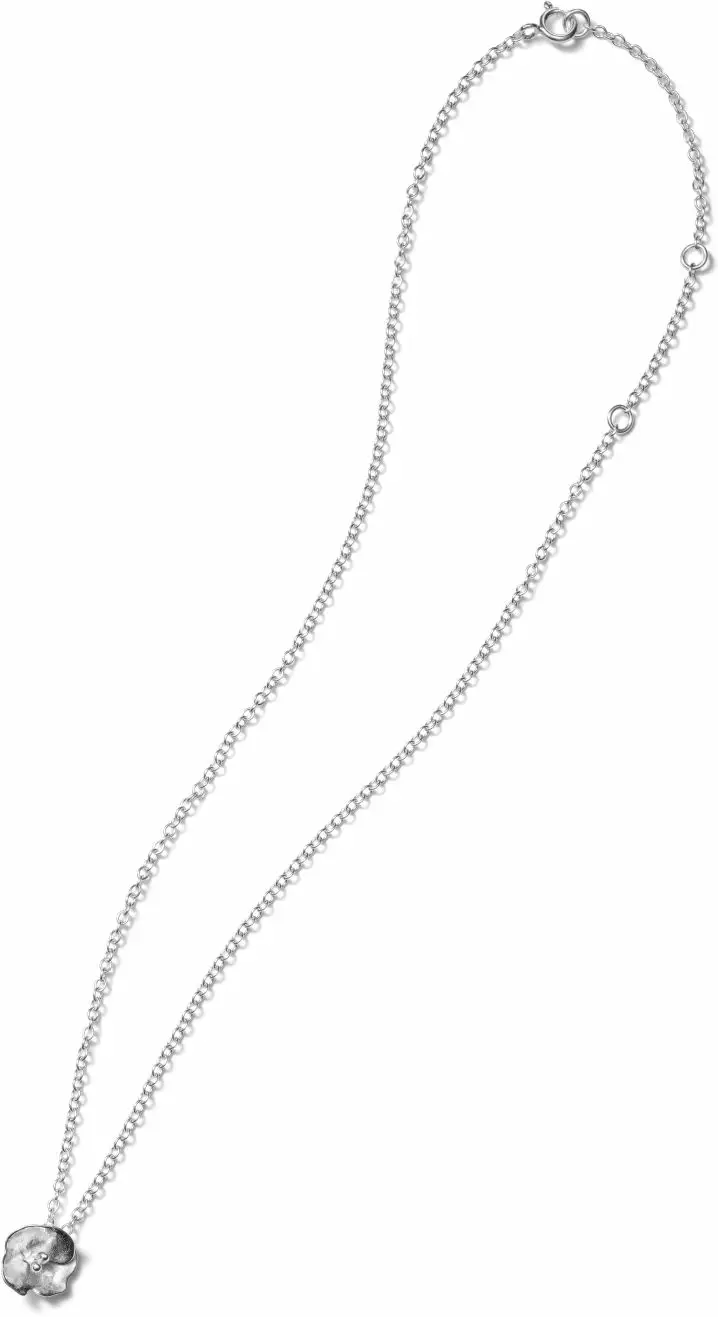 Juhannusruusujen herkkä kauneus puhkeaa kukkaan Kesäyön ruusu -hopeariipuksessa, jossa luonnon inspiroima kukka-aihe on tulkittu ajattomaksi ja hienovaraiseksi koruksi. Pehmeästi muotoiltu kukka tuo riipukseen elävyyttä ja keveyttä, muistuttaen keskikesän valoisista öistä ja luonnon kukkivasta runsaudesta.