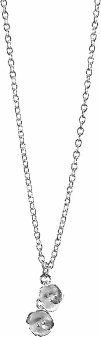 Juhannusruusujen herkkä kauneus puhkeaa kukkaan Kesäyön ruusu -miniriipuksessa, jossa kaksi pientä kukkahelaa muodostavat kevyen ja viehättävän kokonaisuuden. Siro ankkuriketju on säädettävissä 42, 45 tai 50 senttimetriin, ja jousirengaslukko tekee käytöstä helppoa. Riipus on saatavissa myös pronssisena ja kultaisena.