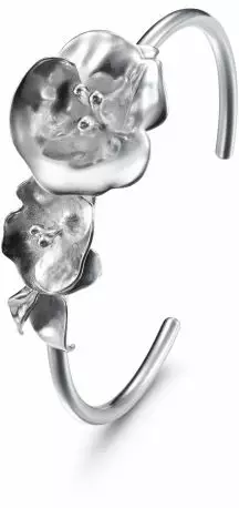 Juhannusruusujen herkkä kauneus puhkeaa kukkaan Anni Ruuth suunnittelemassa Kesäyön ruusu -rannekorussa. Veistoksellinen kukkaköynnös yhdistyy pelkistettyyn, pyöreästä hopeavartaasta muotoiltuun rannerenkaaseen, luoden kevyen ja näyttävän kokonaisuuden.