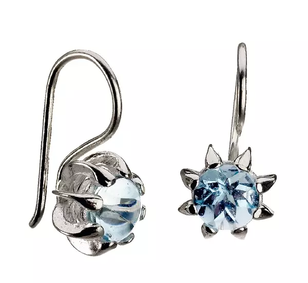 Sirossa hopeisessa Naisen ääni -korvakorussa yhdistyvät keveys ja näyttävyys. Korun keskellä säihkyy kauniisti hiottu vaaleansininen topaasi, joka tuo kokonaisuuteen herkkyyttä ja valon leikkiä. Lukittava hopeakoukku on juotettu kiinteästi riipusosaan, mikä tekee korvakorusta turvallisen ja miellyttävän käyttää.