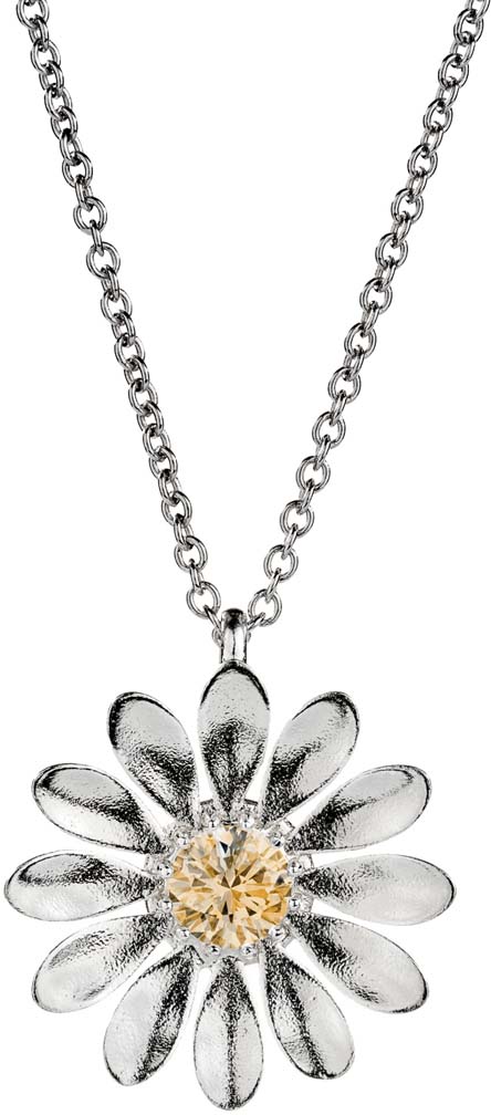 Korusarjan kukkaset on valmistettu hopeasta ja niissä säihkyy eri väriset zirkonit.