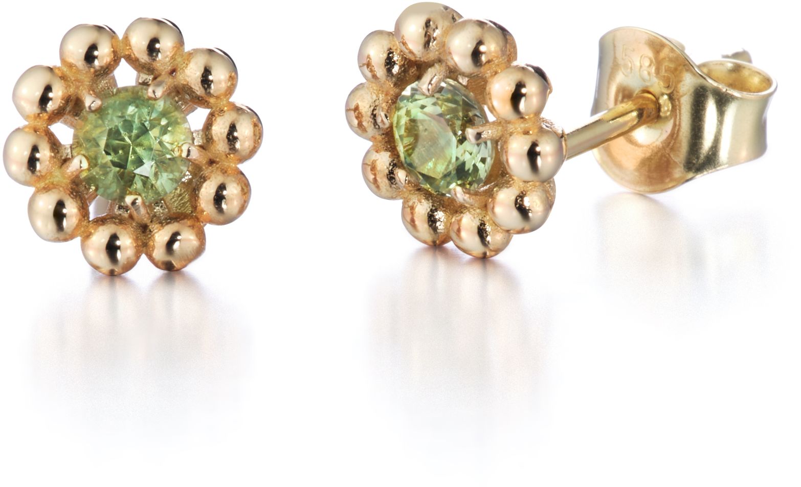 Daisy sarjan kultaisen riipuksen materiaalina on käytetty 100% kierrätettyä keltakultaa ja kivenä riipuksessa säihkyy vastuullisesti USA:n Montanasta louhittu vihreä safiiri.